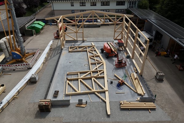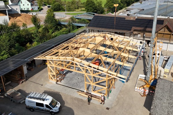 Wir realisieren vielseitige Projekte - hier den Bau einer Maschinen- und Lagerhalle - perfektes Zusammenspiel von Abbund, Holzrahmenbau und unserer Zimmerei